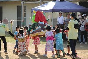 「わっしょい!」の掛け声に合わせておみこしを担いだり、おかし屋さんやおもちゃ屋さんなど模擬店を楽しんだりと、笑顔あふれる時間となりました。