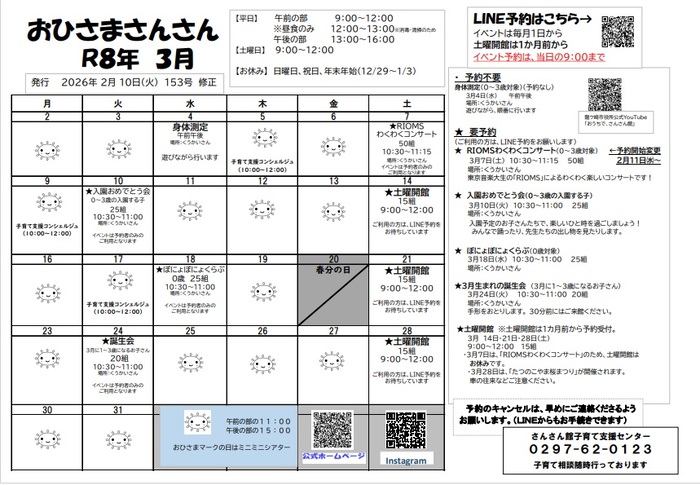 子育て真っ最中のおかあさん、おとうさんが、子育てが楽しくなるような情報の発信や子育て相談などを行い、0歳から3歳までの親子が自由に遊べる場所を提供しております。