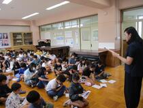 また、体位測定の前に、保健指導を行いました。子供たちは、けがをした時の対応など真剣に話を聞いていました。