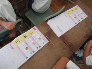 2年生は、新しい漢字を学習しました。1年生の時よりも難しくなる漢字ばかりですが、皆一生懸命に取り組んでいました。また、空中に空書きするときには、大きく腕を動かしていて覚えようとする気持ちが伝わってきました。