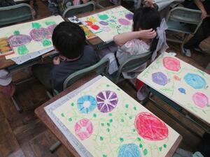現在3年生の図工では、絵画に取り組んでいます。テーマは「まほうの花」です。子供たちは、不思議な種から思い思いのまほうの花を咲かせています。
