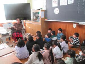 1・2年生は、朝の時間に読み聞かせをしていただきました。クリスマスの本を楽しそうに聞いていました。