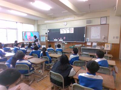 先日、城ノ内小学校に2台の電子黒板が寄贈されました。この電子黒板は「株式会社ニューライフ様(代表取締役会長 野村達夫様、代表取締役社長 青木信様)」から寄贈されたものになります。子供たちは、とても見やすいと喜んでいました。2年生は保健の時間に赤ちゃんのでき方について学びました。子供たちは、赤ちゃんのへその緒が母親のへそには繋がっていないという事実にとても驚いていました。