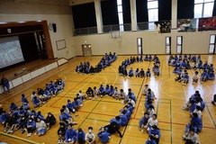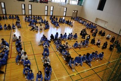 12月22日(月曜日)5校時に生徒会本部役員主催の全校レクリエーションが行われました。ビンゴ、クイズ大会、コレオグラフィーを行いました。コレオグラフィーは学級ごとに人文字で1文字を作り、「JOSAI LOVE」をつくりました。