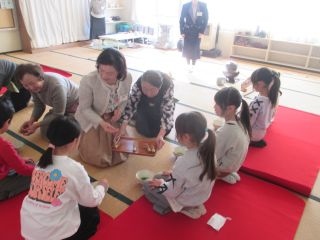 初めての茶道教室 地域の先生方から優しく手ほどきしていただきました。
