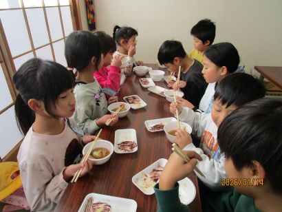 あんこ・きなこ・お雑煮でつきたてをいただきました。おいしすぎておかわり続出~!
