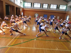 10月23日の久保台っ子運動会に向けて、各学年とも練習に熱を帯びてきました。3年生は4年生とともに「よさこいソーラン節」を披露します。動きにメリハリをつけて、大きく体を使うように担当の先生からの熱心な指導が体育館に響きます。基本的な動きはできてきたので、次は4年生と合わせて隊形移動の練習もしていきます。