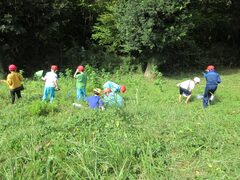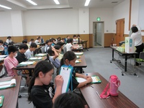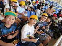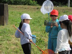 1年生の生活科「生きものだいすき」では、身近な生き物について勉強しました。そこで、学区内の行部内公園で虫捕りをしました。初めは動く虫を怖がっていた女子もだんだんと慣れてきて、最終的にはバッタやチョウなどたくさんの虫を捕まえることができました。捕虫網で捕まえたものの、手でつかめないお友達に「とってあげようか?」と優しく声がけをすることもできていました。