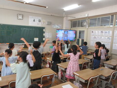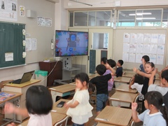 10月23日の「久保台っ子運動会」に向けて、さっそく練習が始まりました。1年生にとっては、小学生になってはじめての運動会、表現運動では2年生のお姉さん、お兄さん達とアニメ映画「リロ&スティッチ」の主題歌「アロハ・エ・コモ・マイ」を踊ります。まだまだ熱中症が心配される暑さなので、室内で電子黒板に映された動画を見ながら一生懸命に練習しています。