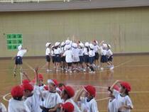 1、2年生の体育では、スポーツ大会で行う「玉入れ」と「表現」の練習をしました。