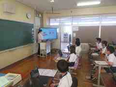 5年生は外国語の授業で「身近な人を紹介する」学習をしました。今日はキット先生にスライドを見せながら先生の紹介を行いました。ジェスチャーやアイコンタクトに気を付け、堂々と紹介することができました。外国語の学習を頑張っています。