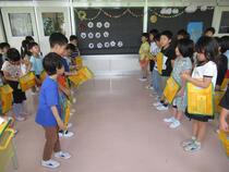 今日は、あいにくの雨でした。1年生は、中間休みに椅子取りゲームをしていました。また、図工では、「チョキチョキかざり」を作りました。七夕に向けて楽しみですね。