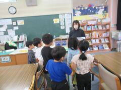6時間目には、図書室で4年生に本の読み聞かせが行われました。連休中に読む本も、選ぶことができました。