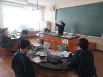 5年生は理科で「電磁石」について学習しています。今日は電磁石を使ったモーターを作り、車を走らせました。