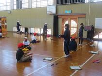 松葉小学校では、なわとび検定に取り組んでいます。それぞれの目標に向かって回数を伸ばせるように練習に励んでいました
