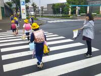 学区内の小柴交差点では、「イセデリカ株式会社」の方々が、登校時の見守りをしてくださっています。
