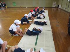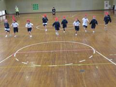 6年生が「なんでもバスケット」をして一年生と一緒にたのしく遊んでいました。