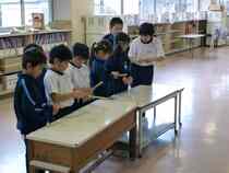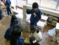 生活科の学習で2年生が牛乳パックやわりばし、ストローなどを使っておもちゃを作りました。
