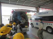 今日は3年生が長山小学校の児童と一緒に、社会科の学習で消防署見学に行きました。