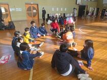 長山小学校の体育館でレクレーションやプレゼント交換をしたり、校舎内を案内してもらったりしました。