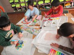 生活の時間に「凧作り」をしました。毎年、冬には、秋との遊びと比較をして、昔の遊びをします。 こま、けん玉、かるた、おはじき、あやとり、羽根つきは、12月に体験しました。最後は、凧を作って、6年生と飛ばします。秋とは違う冬の自然を生かした遊びの楽しさに気付けるといいですね。