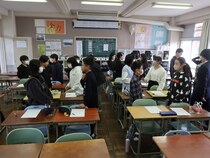 2年3組が3年生の合唱をみたいということで、交流の機会をつくりました。3年生は、合唱がとても好きで上手です。今回、2年3組の皆さんは、3年2組の合唱を聴き、刺激になったようです。2年3組も3年2組の生徒に聴いてもらいました。3年2組の生徒は温かい拍手を送っていました。