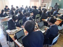 1年生では、校外学習を実施します。アクティビティー体験を通して、自分のよさを発揮しながら、仲間とのつながりを深め、社会と自分との関わりを理解して主体的に行動できる心を育てます。今日は、一人一人が個人活動目標を立て、タブレットに入力していました。
