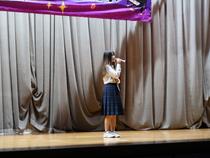 午後は、コミニュティスクール事業の一環として、地域のサークルとして活動している「二胡アンサンブル 紫音」をお招きして演奏していただきました。二胡の優雅な音色を楽しみました。即席で、吹奏楽の打楽器担当の生徒とのコラボもしました。吹奏楽部は、「Let‘s Swing!!」などを演奏し会場を盛り上げ、有志発表では、ピアノ独奏、独唱、ダンスなど、1年生から3年生まで11グループが出場し、午後の部を盛り上げてくれました。生徒にとって、楽しい1日だったと思います。