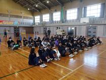 学区の小学校6年生を対象に、体験入学を行いました。体験授業では、英語や数学、国語、社会の4教科を本校教員が行いました。皆、楽しそうに取り組んでいました。その後、生徒会主催の学校説明、市社会教育主事から部活動地域移行、校長の話と続き、最後に部活動見学をしました。小学生たちは、中学校生活を知り、4月からの生活が楽しみになったようでした。