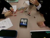 電圧を計る区間によって大きさがどのように変わるのかを、実際に測定しながら確認しました。生徒たちは班ごとに協力し、電圧計の使い方や、結果から考えられることについて熱心に考察していました。どの班も意欲的に取り組み、学びの多い実験となりました。