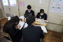 新生徒会本部は初の会議でした。旧生徒会の生徒たちとの引継ぎをしていました。