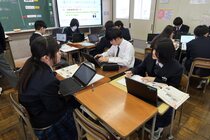 根本校長先生からは、授業のテンポや様々な活動を取り入れ生徒が飽きないように工夫している、ICTの活用の工夫、個への対応、生徒の学び合いなどが見られ、高校でも紹介したいと話されておりました。