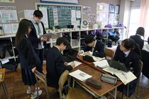 今日は、拠点校指導(新採指導)の先生が、本校の新規採用の若手教員に、授業後の振り帰って丁寧に指導・助言をしていました。