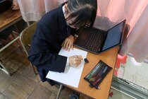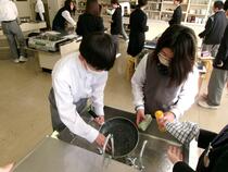 3校時に授業の様子を見に行きました。2年1組の技術では、ミニラジオを製作していますが、ちょうど回路のはんだ付けで間違えた時の方法を教わっていました。どのように剥がすのか興味をもって見ていました。1年1組の家庭科では、次回の調理実習に向けて、器具等の点検や洗浄を協力しあって活動していました。調理実習が楽しみのようでした。2年2組の国語では、「具体と抽象」の表現について真剣に学んでいました。1年3組の数学では、「おうぎ形の中心角」について、級友と学びあっていました。3年2組の英語では、受験問題を解いていました。級友と教え会いながら真剣に取り組んでいました。