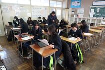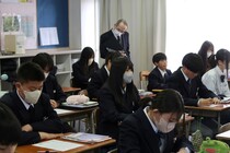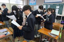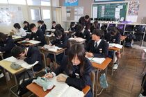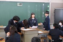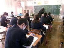 冬休みが明けて2日目。生徒たちは、しっかり学習に励んでいました。3年生は実力テストを実施していました。私立入試目前ともあり、皆、一層真剣に取り組んでいました。1・2年生は、真剣に自力問題を解いて解く姿が見られました。音楽では、「お正月といえば・・・というテーマで「春の海」を鑑賞していました。