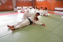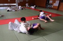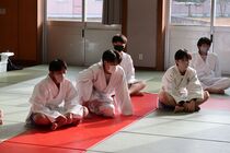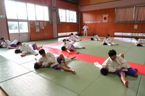 2年生の体育では柔道を学習しています。今日は、寝技の練習をしていました。若手の体育担当が、技のやり方を丁寧に示していました。生徒たちは、初めての経験でありましたが、男女とも楽しく練習をしていました。
