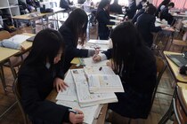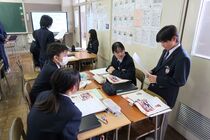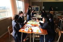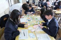 1年生の家庭科では、「消費生活」の学習をしています。今日は、すごろく形式のゲーム教材を使い、楽しみながら、結婚・住宅購入などのライフイベント、病気・ケガ等のリスク、振り込め詐欺や架空請求といった消費者被害事例等、人生を疑似体験する活動をしていました。皆、興味をもって取り組んで楽しく取り組んでいました。