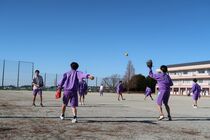 さて、部活動の練習が始まりました。今日は、校長が新年の挨拶に各部活動をまわりました。キャプテンは、今年のチームの抱負を笑顔で述べていました。