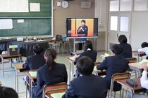 本日より授業開始です。生徒たちは、寒い中でしたが元気に登校しました。登校後、リモートで全校集会を行いました。校長からは、『馬は、前を向き力強く走る。そこから「行動力」や「前進」、「挑戦」の象徴とされてきた。新年を迎え、何事にも前向きに挑戦し、一歩ずつ努力積み重ねていってほしい。その小さな積み重ねが大きな成長につながる』と、干支にちなんだ話と、生徒への期待について話をしました。