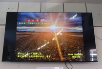 その他、職員が生徒玄関に門松を飾ったり、黒板にメッセージを書いたりしていました。生徒玄関大モニタにも初日の出の画像を映し出しました。