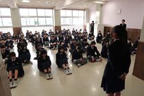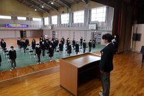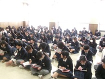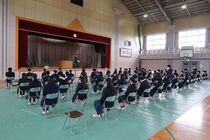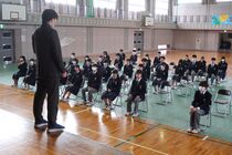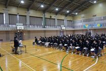 宿泊学習(スキー学習)が来週になりました。それに向けて、2学年でしおりの読み合わせと出発式が行われました。注意事項や日程に関して、学年主任より説明があり、生徒たちは真剣にメモを取りながら聞いていました。