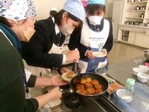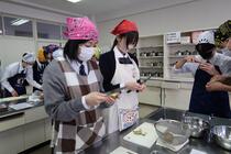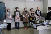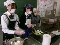 3年2組の調理実習を行いました。コミュニティ・スクール事業として、学校運営協議会の方のご紹介で、5名の保護者を含む地域の方々に支援のご協力をいただきました。生徒たちは、調理のコツを教えていただき完成させました。