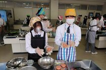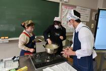 本日、3年1組において調理実習が行われました。学校運営協議会の委員の方や馴馬台地区の地域ボランティアの皆様にもご協力いただき、限られた時間の中でしたが調理を無事に完了することができました。