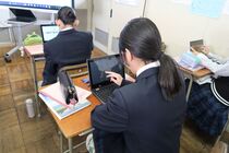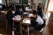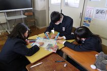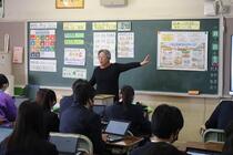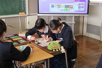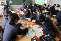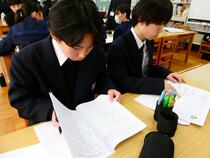 1年1組では、国語の学習をしていました。物語の場面と描写を結びつけて作品を読み深める内容でした。生徒たちは、様々な登場人物の視点でじっくり読み、作品の印象がどうのように変わるのかを考えていました。