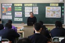学年末の授業参観を開催しました。2年生は、「進路について考える~夢を形にするための高校選び~」というテーマで、常総学院高等学校の高野先生をお招きして、進路学習会を行いました。進路を決まるまであと約半年とあって、真剣に話を聞いていました。