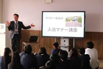 インフルエンザの感染拡大で実施日変更になった宿泊学習。出発1週間前となりました。5校時に事前指導を行いました。まず、校長から宿泊学習のねらいの確認と入浴マナー、担任からバイキング料理のマナーについての話があり、その後、係ごとに活動の再確認を行いました。