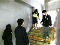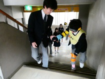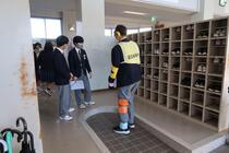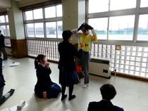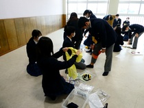 3年生の家庭科では、「家族や地域の高齢者との関わり」という学習をしています。高齢者の体の特徴について理解し、よりよい関わり方を考える学習ですが、今日は、高齢者疑似体験キットを使い、介助する中学生役と高齢者役を交代しながら体験してみました。生徒たちは、お年寄りの苦労や介助の声かけの難しさを実感しました。ある生徒は、「この体験を通して、お年寄りが歩きやすくなるように、体の支え方を工夫したい」とワークシートに書いていました。