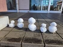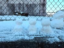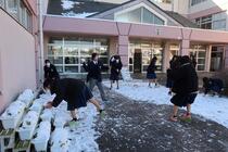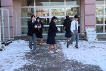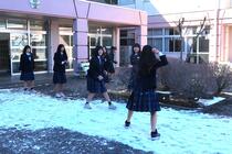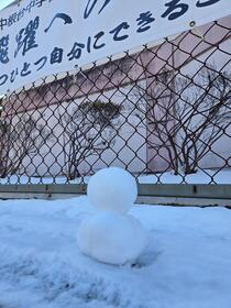 本日は、昨日の降雪の影響により、2時間遅れの登校でした。校門で生徒たちを出迎えていたところ、雪を手に取り丸めながら、楽しそうに登校してきました。生徒たちが作った可愛いミニ雪だるまがありました。昼休みは、わずかに残った雪で雪合戦をして遊んでいました。
