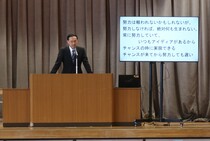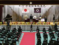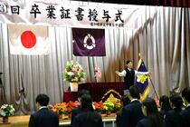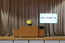 学校長の式辞では、生徒たちのこの1年間の努力を称えるとともに、「自立・共生・貢献の大切さ」や、「目の前のことに全力を尽くして進むことの大切さ」、「努力を積み重ねることの意義」についての話があり、生徒たちは真剣な表情で耳を傾けていました。