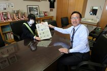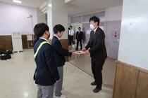 1年生で開催した「お菓子選手権」。学級団体部門の優勝は、1年2組でした。昼の放送で発表し、校長が賞状の授与に教室を訪問しました。